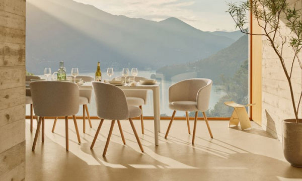 究極に心地よい椅子を目指し開発された「ミカド」は、ダイニングでも会議室でも、場所を選ばないチェアです。座面下に隠された独創的でシンプルなメカニズムにより、背もたれをわずかにリクライニングさせることができます。豊富で多彩な張地とレッグのバリエーションから選ぶことができます。身体を包み込むようなアームチェアとすっきりとした背もたれのサイドチェアの2つのモデルがあります。長く使えるよう、クリーニングやメンテナンスのためのカバーやレッグの交換が可能です。