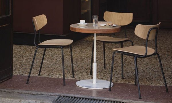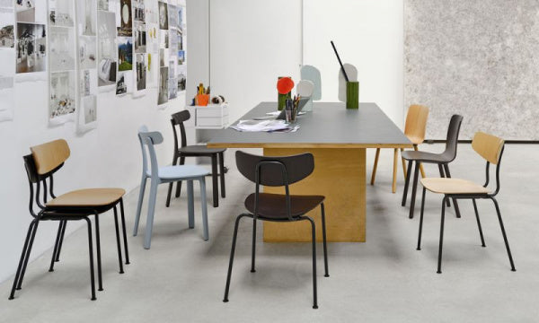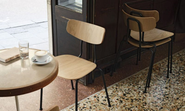 イギリスのデザイナージャスパー・モリソンが、彼の「スーパーノーマル」というデザイン哲学を体現しデザインした「モカ」。あらゆる環境や状況に自然と溶け込む普遍的なデザインです。控えめで親しみ深い外観に加え、耐久性のある高品質な素材、機能性と実用性を兼ね備え、長い年月使い続けることができます。1本は背もたれを支えながら前脚となり、もう1本は後脚となる、2本のスチールチューブがモカの基本構造です。快適性を考慮して成形されたプライウッドが座面と背もたれとして取り付けられ、スタッキングした際に表面を傷つけないよう、裏にはスタッキングプロテクターを備えています。デザイン、機能性、耐久性まですべての面において高い基準を満たすモカは、個人の住まいだけでなくレストランやカフェなどの公共スペースで使用することができます。