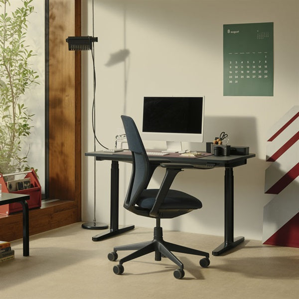 タイド 2 ホームデスクは、オフィス向けタイド2デスクファミリーの機能性を活かしつつ、ホームオフィスにも最適なモデルとして開発されました。長時間同じ姿勢で作業を続けることは健康に悪影響を及ぼすため、オフィスでも自宅でも座る・立つ姿勢を切り替えながら作業することが大切です。電動昇降機能により天板の高さを調整でき、技術的な部品は目立たないよう巧みに隠されています。フォルムや素材はカジュアルで落ち着いた印象を備え、さまざまなインテリアに溶け込みます。