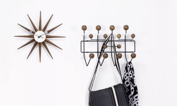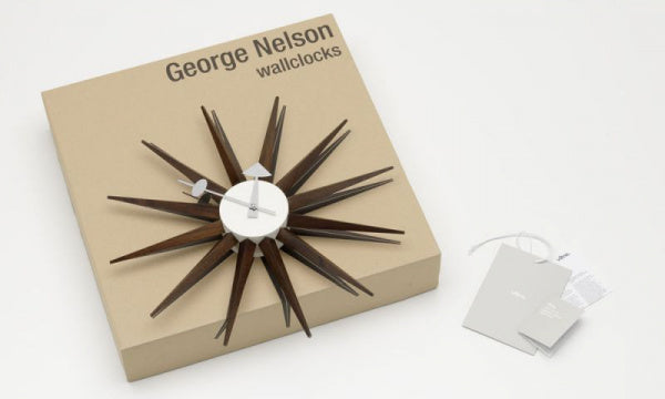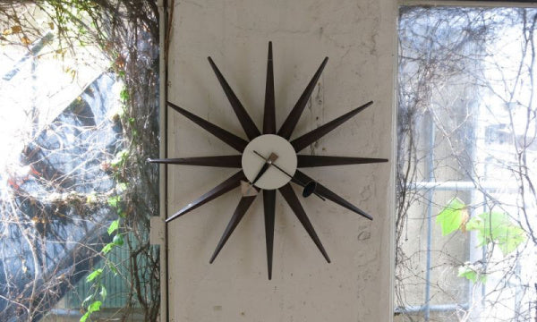 サンバーストクロックは1957年にジョージ・ネルソン(George Nelson)によって製作されました。 太陽が光輝くような様をモチーフにしたような、遊び心あふれるデザインとなっております。 突き出すような光の線は、カラフルにペイントされており見るものを楽しくさせてくれます。ムーブメント:ドイツ、ユンハンス社製。【1948-1960年デザイン】【送料無料】