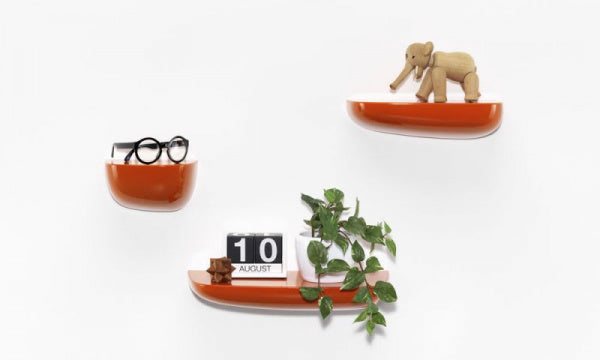 ブルレック兄弟がデザインしたシェルフは、エントランスに設置し鍵の置き場として、洗面の手の届くところに設置し、メガネを置いたり、小さな物を置くための棚として使用できます。数個集まれば、壁全面を使ってひとつながりのデザインを表現することもできます。【2012年デザイン】穴開け必要。取り付けの際は壁面に穴を開け、アンカーを差込み木ネジで固定します。(石膏ボード用アンカーは付属しておりません。)【送料無料】
