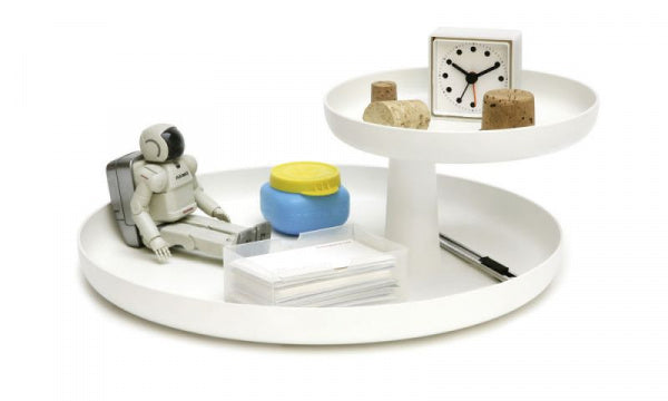「ロータリートレー」は、ジャスパー・モリソンが昔からある飾り棚を現代的に再解釈したデザインです。簡潔なデザインとニュアンスのある色合いのロータリートレーは、リビング、ダイニング、バスルームや玄関、オフィスから子ども部屋で、収納、飾り棚、器などさまざまな用途で使用できます。【2014年デザイン】