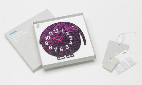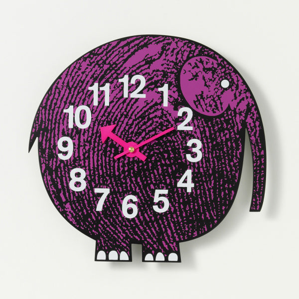 動物たちが色鮮やかにデザインされたジョージネルソンのウォールクロック。子どもたちに時間を知る遊び心と明るい毎日を提供してくれます。壁画のようなゾウのモチーフ。ビビッドなピンク針とのコントラストはアートな印象。大人でも楽しめるクロックです。ムーブメント:ドイツ、ユンハンス社製。【1965年デザイン】【送料無料】