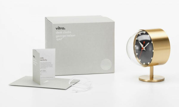 ジョージネルソンが自宅用にデザインした多くのアクセサリーには、さまざまな置時計が含まれています。幅広いインテリアシーンで使用されており、時代を越え洗練されたデザインは世界中で非常に高い評価を受けているテーブルクロックの名作です。ナイトクロックは重厚な真鍮の本体とドーム状の風防が特徴で、モダンデザインのアイコンとして長年愛され続けています。ムーブメント:ドイツ、ユンハンス社製。【1947年デザイン】【送料無料】