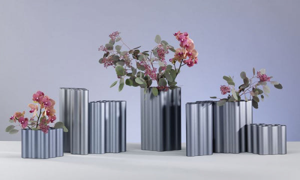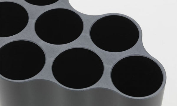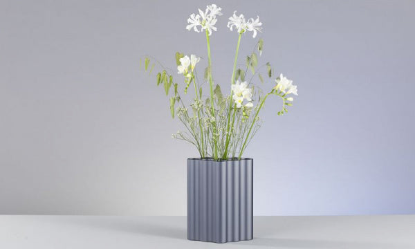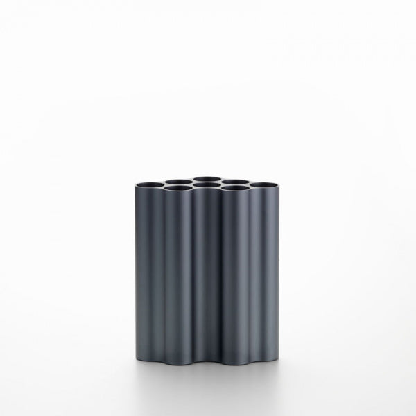 雲のようなそのフォルムをプラスチック製のチューブを束ねて表現したフラワーベースです。流れる雲を思わせるなだらかな形状は、垂直にそり立つ8つの円筒型のチューブが横に連なることによって構成されています。