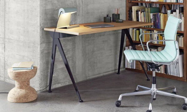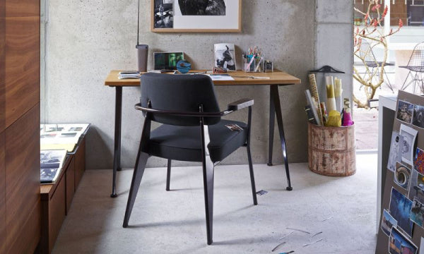 コンパス ディレクションは、ジャン・プルーヴェによってデザインされました。シャープでエレガントに広がるスチール製の脚は、コンパス(フランス語で‘le compas’)の針をわかりやすく表現しています。天板にはオイル仕上げのソリッドウッドが用いられ、ホームオフィスの空間を魅力的に彩ります。【1953年デザイン】