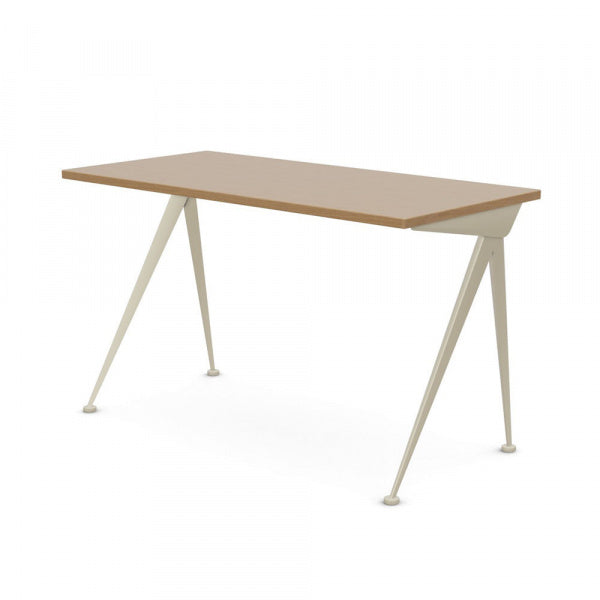 コンパス ディレクションは、ジャン・プルーヴェによってデザインされました。シャープでエレガントに広がるスチール製の脚は、コンパス(フランス語で‘le compas’)の針をわかりやすく表現しています。天板にはオイル仕上げのソリッドウッドが用いられ、ホームオフィスの空間を魅力的に彩ります。【1953年デザイン】