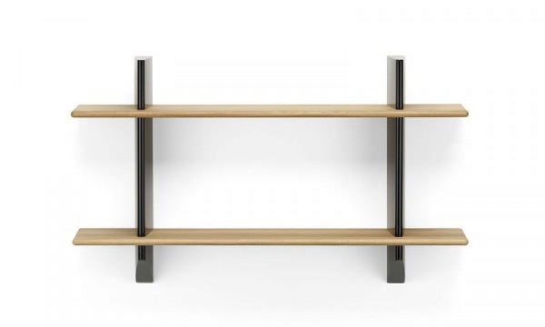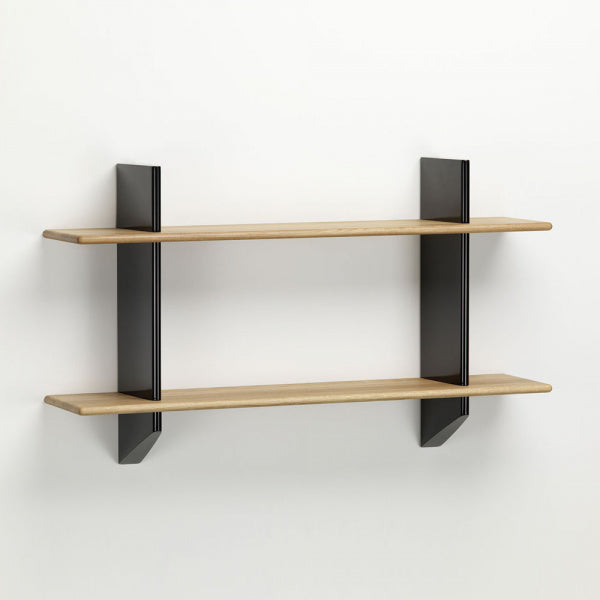 レイヨナージュ ミュラルは、20世紀前半のインテリアによく見られるユニット式の壁付け棚です。ジャン・プルーヴェにより1936年、フランスのメッスにある教育施設のために作られました。飛行機や船の舵を連想させる流線形のフォルムが特徴で、彼の応用した特徴的なデザインが組み込まれています。垂直の2つのウォールブラケットは、板金曲げ加工後に塗装されたスチール板で作られています。金属製のブラケットには切り込みが施され、無垢材の棚板が水平に挿入されています。対照的な金属と木材のコンビネーションが美しいデザインだけでなはく、実用性を兼ね備えています。組立式で壁にも金具での固定となります。【1936年デザイン】※受注商品のため、ご注文後のキャンセルはご遠慮ください。※お取り付けについては、取り付け壁の材質をご確認してください。石膏ボードなど内部に芯材のない壁面にはお取り付けができませんので、予めご了承ください。