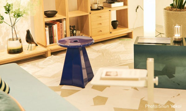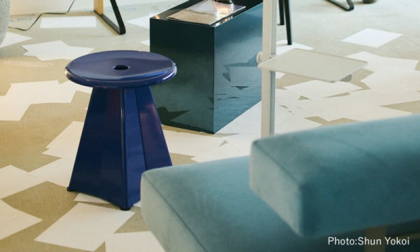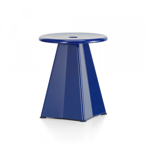 タブレ メタリークは、ジャン・プルーヴェがサン=モーリスの教育施設のためにデザインした金属製のスツールです。サイドテーブルとしても使用できる実用的なアイテムです。板金曲げ加工による湾曲したスチール板による座面を支える本体は、後にデザインされたトラぺーゼテーブルと親和性の高い構造です。