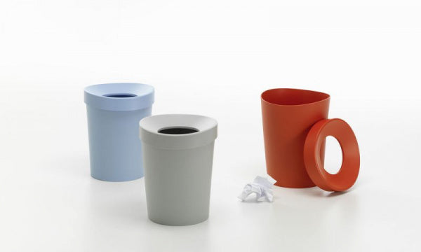 漫画や彫刻にインスピレーションを得てデザインした、軽量で丈夫なプラスチック製のごみ箱です。わずかに波打つような有機的なフォルムが、小さな彫刻作品のような印象を与えます。