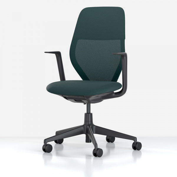 「ACX(エーシーエックス)」は、ヴィトラがイタリア人デザイナーであるアントニオ・チッテリオと協働で開発した10番目となるオフィスチェアです。構造、材料、生産、物流、メンテナンスなど、製品のライフサイクル全体を通してカーボンフットプリントを最小限に抑えるとともに、長く使い続けることができる耐久性と高い品質を兼ね備えた持続可能性の高い設計が特徴です。操作性はとてもシンプル、シートの高さを合わせるだけで座る人に合わせた最高の座り心地を自動的に実現します。ACXは人間工学に基づいた必要な機能を持ちながら、すっきりとしたデザインで、豊富なカラーバリエーションのニット生地のカバーを取り揃えオフィス空間にはもちろん、ホームオフィスにも最適なオフィスチェアの傑作です。バックレストには、ブラック色の網目状のカバーが施され、人間工学に基づいた快適性と同時に優れた通気性を実現しています。