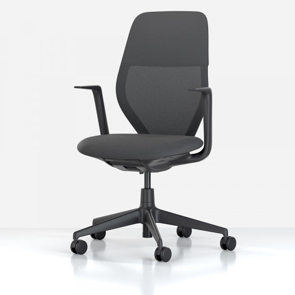 「ACX(エーシーエックス)」は、ヴィトラがイタリア人デザイナーであるアントニオ・チッテリオと協働で開発した10番目となるオフィスチェアです。構造、材料、生産、物流、メンテナンスなど、製品のライフサイクル全体を通してカーボンフットプリントを最小限に抑えるとともに、長く使い続けることができる耐久性と高い品質を兼ね備えた持続可能性の高い設計が特徴です。操作性はとてもシンプル、シートの高さを合わせるだけで座る人に合わせた最高の座り心地を自動的に実現します。ACXは人間工学に基づいた必要な機能を持ちながら、すっきりとしたデザインで、豊富なカラーバリエーションのニット生地のカバーを取り揃えオフィス空間にはもちろん、ホームオフィスにも最適なオフィスチェアの傑作です。バックレストには、ブラック色の網目状のカバーが施され、人間工学に基づいた快適性と同時に優れた通気性を実現しています。