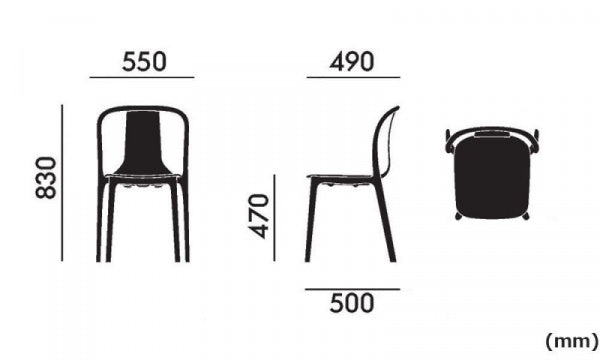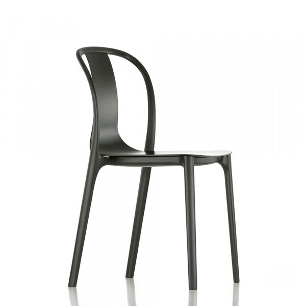 「ベルヴィル チェア」は、フレームとシートシェルの2つのパーツで構成され、肘掛けのついたアームチェアタイプと、肘掛けのないアームレスタイプが選べます。広めの座面が背もたれにかけて細くなっていき、非常に薄いシェルを支えています。プライウッドの成形合板を用いたベルヴィルチェアウッドは、木製のシートによって暖かみのある雰囲気が特徴です。