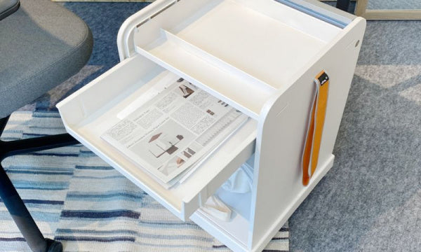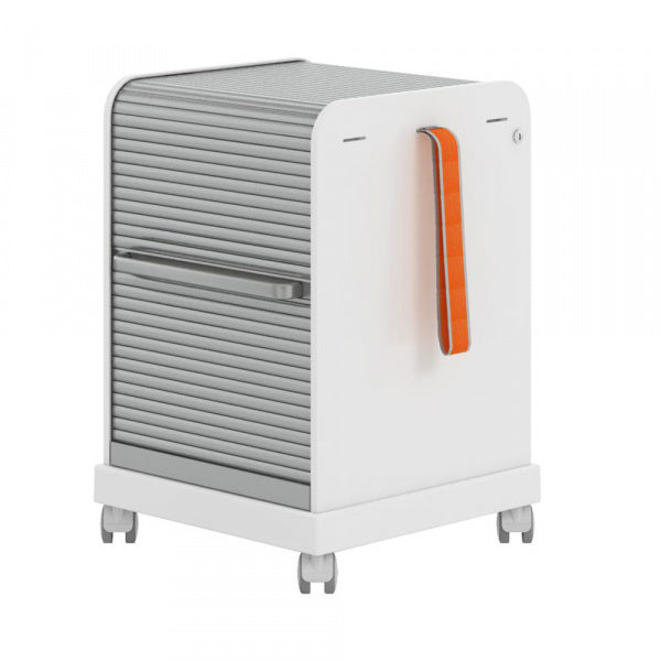 【組み合わせ】本体:ソフトライト、引き出し:ソフトライト。 「フォロミー」は鍵付きの丈夫な可動式収納です。オレンジ色のストラップを引っ張ると簡単に移動でき、オフィスや自宅などのさまざまな場面で活用できます。書類ファイルを収納するのに最適な棚板と、取り外し可能な引出しが付属し、使用しない時にはシャッターを閉じることで書類等が目に入ることがなく、空間を美しく保つことができます。※受注商品のため、ご注文後のキャンセルはご遠慮ください。