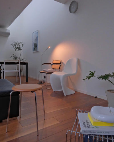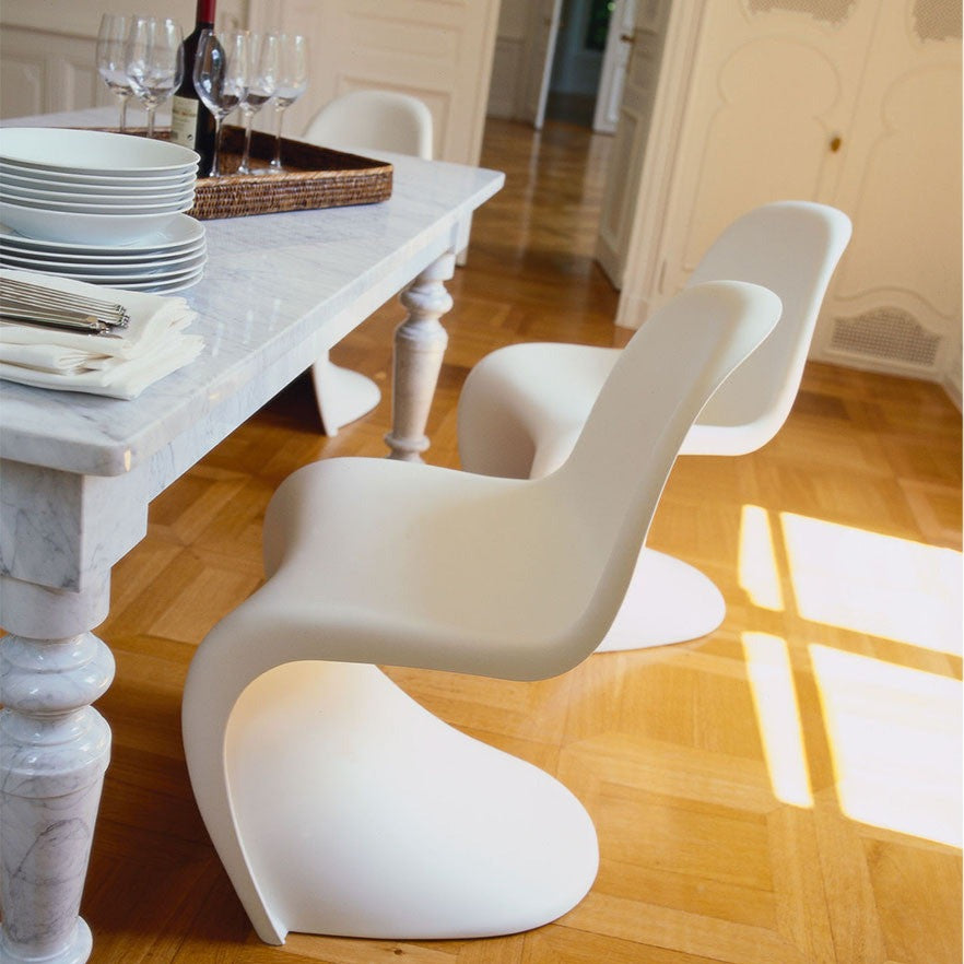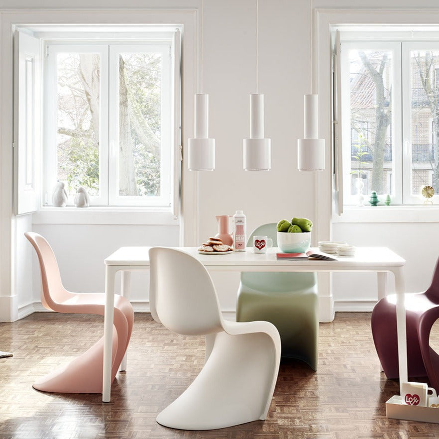 世界初のプラスチックによる一体成形型キャンチレバーの椅子です。パントンチェアは、わずかにしなる素材と、ユニークなキャンチレバー型のデザインにより、非常に快適な座り心地です。屋内だけでなく屋外でも使用可能で、1脚でも、複数脚同時に使用しても空間を美しく彩ります。