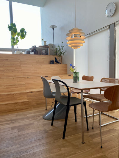 世界初のプラスチックによる一体成形型キャンチレバーの椅子です。パントンチェアは、わずかにしなる素材と、ユニークなキャンチレバー型のデザインにより、非常に快適な座り心地です。屋内だけでなく屋外でも使用可能で、1脚でも、複数脚同時に使用しても空間を美しく彩ります。