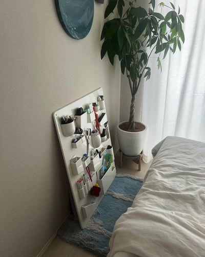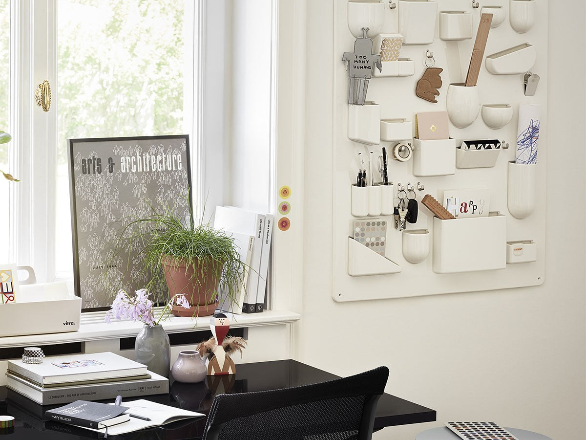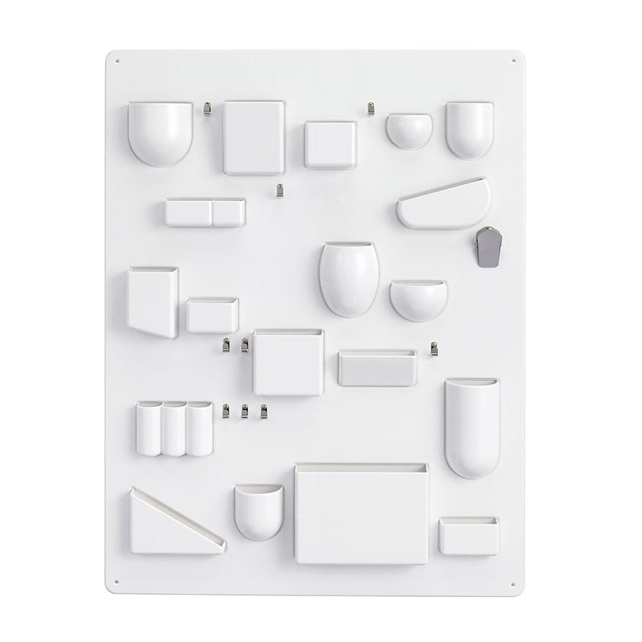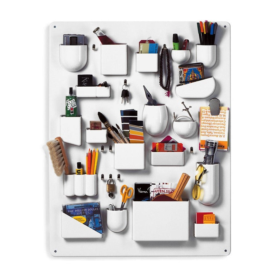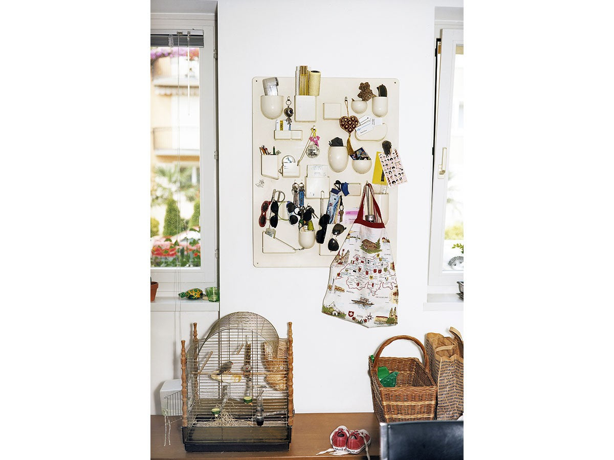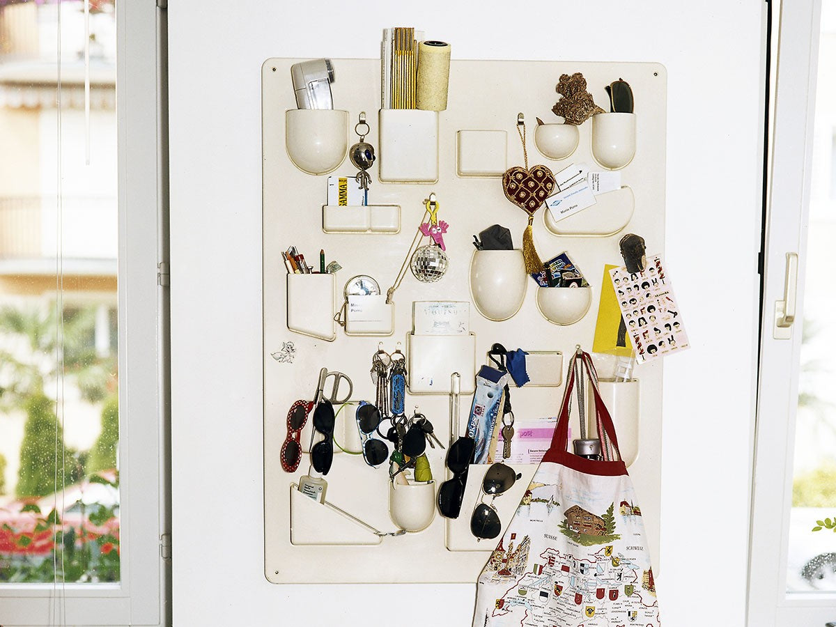 キッチン、書斎、バスルーム、子供部屋、オフィスなど、幅広いシーンの整理整頓に役立つ多目的壁掛け収納。ドイツ人デザイナー、Dorothee Becker(ドロシー・ベッカー)は、1969年に「ウーテン シロ 1」を、その1年後には小型サイズの「ウーテンシロ 2」をデザインしました。壁に取付けて使用することで、自宅やオフィスなど物が溢れる場所を整理し、綺麗に保ちます。金属のフックや様々な形のポケットがあるため、日常的に使用する物を探しやすく、美しく収納することができます。収納する物によって印象が変わり、壁面を飾るオブジェのように変化します。