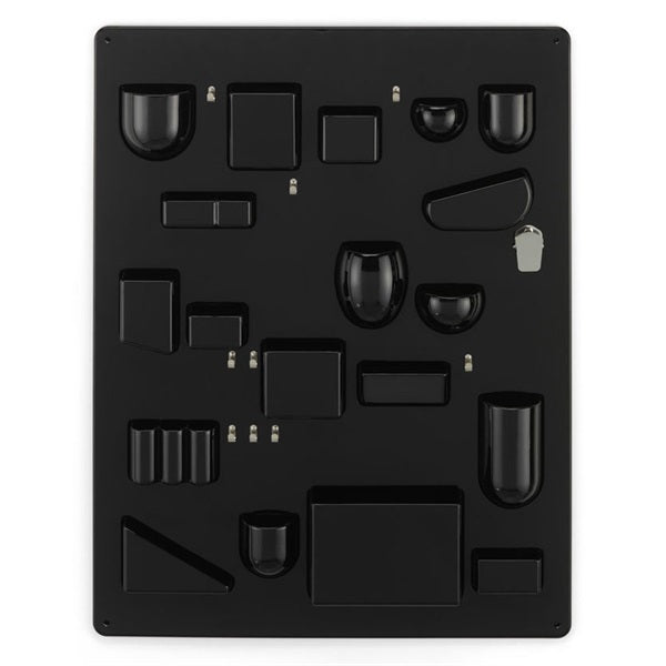 キッチン、書斎、バスルーム、子供部屋、オフィスなど、幅広いシーンの整理整頓に役立つ多目的壁掛け収納。ドイツ人デザイナー、Dorothee Becker(ドロシー・ベッカー)は、1969年に「ウーテン シロ 1」を、その1年後には小型サイズの「ウーテンシロ 2」をデザインしました。壁に取付けて使用することで、自宅やオフィスなど物が溢れる場所を整理し、綺麗に保ちます。金属のフックや様々な形のポケットがあるため、日常的に使用する物を探しやすく、美しく収納することができます。収納する物によって印象が変わり、壁面を飾るオブジェのように変化します。
