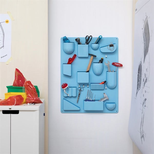 キッチン、書斎、バスルーム、子供部屋、オフィスなど、幅広いシーンの整理整頓に役立つ多目的壁掛け収納。ドイツ人デザイナー、Dorothee Becker(ドロシー・ベッカー)は、1969年に「ウーテン シロ 1」を、その1年後には小型サイズの「ウーテンシロ 2」をデザインしました。壁に取付けて使用することで、自宅やオフィスなど物が溢れる場所を整理し、綺麗に保ちます。金属のフックや様々な形のポケットがあるため、日常的に使用する物を探しやすく、美しく収納することができます。収納する物によって印象が変わり、壁面を飾るオブジェのように変化します。
