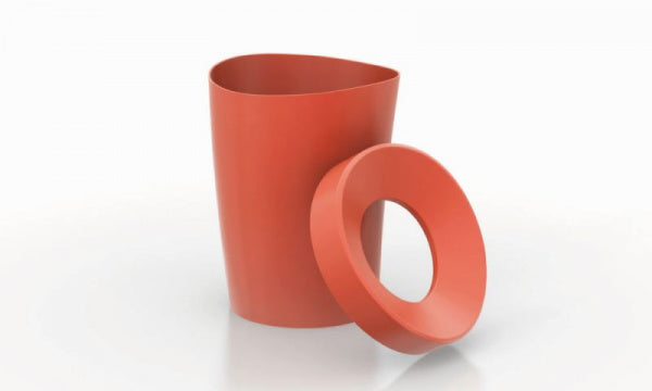 漫画や彫刻にインスピレーションを得てデザインした、軽量で丈夫なプラスチック製のごみ箱です。わずかに波打つような有機的なフォルムが、小さな彫刻作品のような印象を与えます。