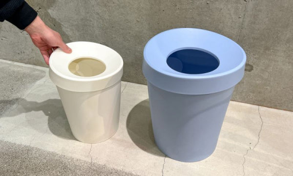 漫画や彫刻にインスピレーションを得てデザインした、軽量で丈夫なプラスチック製のごみ箱です。わずかに波打つような有機的なフォルムが、小さな彫刻作品のような印象を与えます。