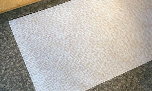 玄関やサニタリールームなどあらゆるシーンでお使いいただけます。バクテリアやカビなど抑制する抗菌材質Microbanを使用しており、お手入れが簡単なのでお子様やペットのいるご家庭にもおすすめ。モザイクで生まれ変わった伝統的なダイヤモンドの綾織。チルウィッチの特徴であるバイカラーヤーンが織り出すプリズムのようなベールで、独特な形の格子が並ぶデザインが生地上でソフトに浮き上がっています。また、よく見ると一つ一つのダイヤモンドは少しずつ違った小さなデザインになっています。【ご使用不可の場所】各種コーティング、塗装材が十分に乾いていない床。水回り、湿度の高い床、清掃直後の床。太陽光の強い場所、室温上昇が予想される場所。ゴム製キャスター、ゴム製家具パッド、ゴム製シートを使用する場所。【取扱方法】掃除機で汚れを吸引し、乾いた布、または水気を十分に絞った布で、汚れを拭き取りください。織の隙間に付着した汚れはブラッシングで取り除いてください。乾いた布で再度拭き取り、風通しの良い場所に干してから再びご使用ください。長期間敷きっぱなしにはせず、風通しの良い場所で陰干しをしてください。【送料無料】