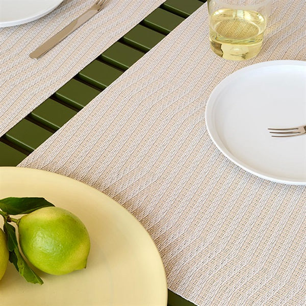 同系色の色合いで描かれた波線が砂に刻まれた線のようなことから「Dune (デューン):砂丘」と名付けられた落ち着いた雰囲気のデザインです。複数の織り構造による緩やかにカーブするストライプで手触りのよい作品に仕上がりました。生地が大きなスケール感でデザインされています。生地の連続性と自然な風合いが強調され、一枚一枚少しずつデザインが異なります。製品寿命を通して持続的に作用し、染みや匂いの原因となるバクテリアやカビ等の発生を抑制する抗菌材質「Microban」が含まれています。