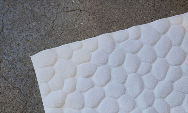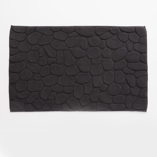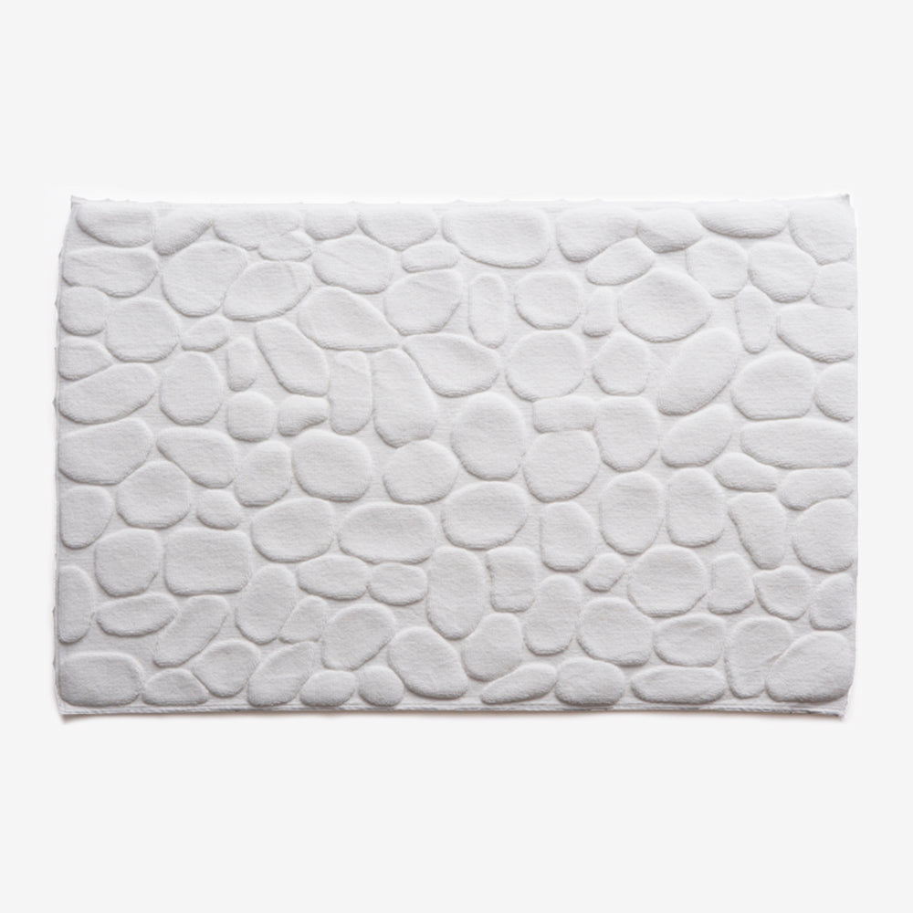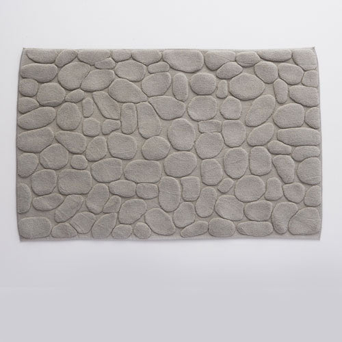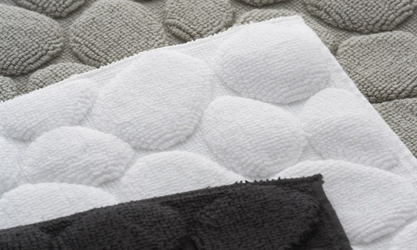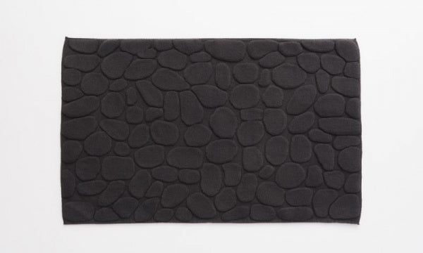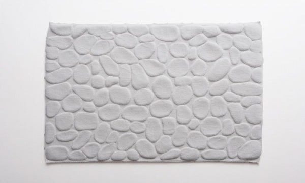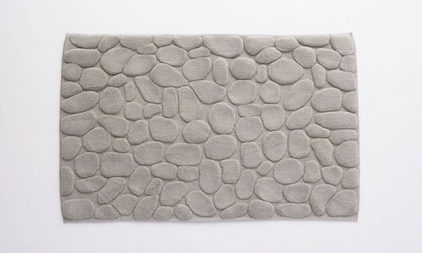 脱衣所に、玉砂利が出現?いえいえ、懐かしい、あの玉砂利の模様をした柔らかなバスマットなのです。硬くてごつごつしたイメージとは裏腹に、このバスマットはとても柔らかく、厚みもあるので、足裏を気持ちよく受け止めます。