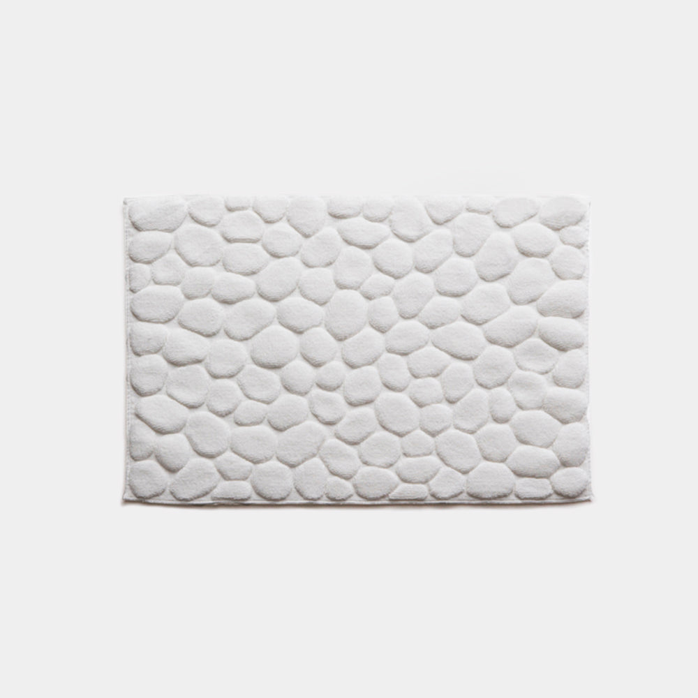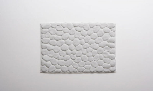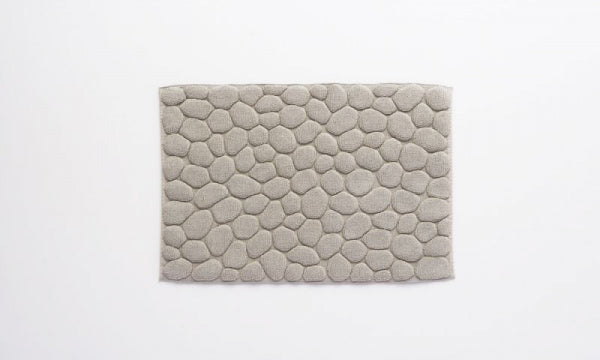 脱衣所に、玉砂利が出現?いえいえ、懐かしい、あの玉砂利の模様をした柔らかなバスマットなのです。硬くてごつごつしたイメージとは裏腹に、このバスマットはとても柔らかく、厚みもあるので、足裏を気持ちよく受け止めます。