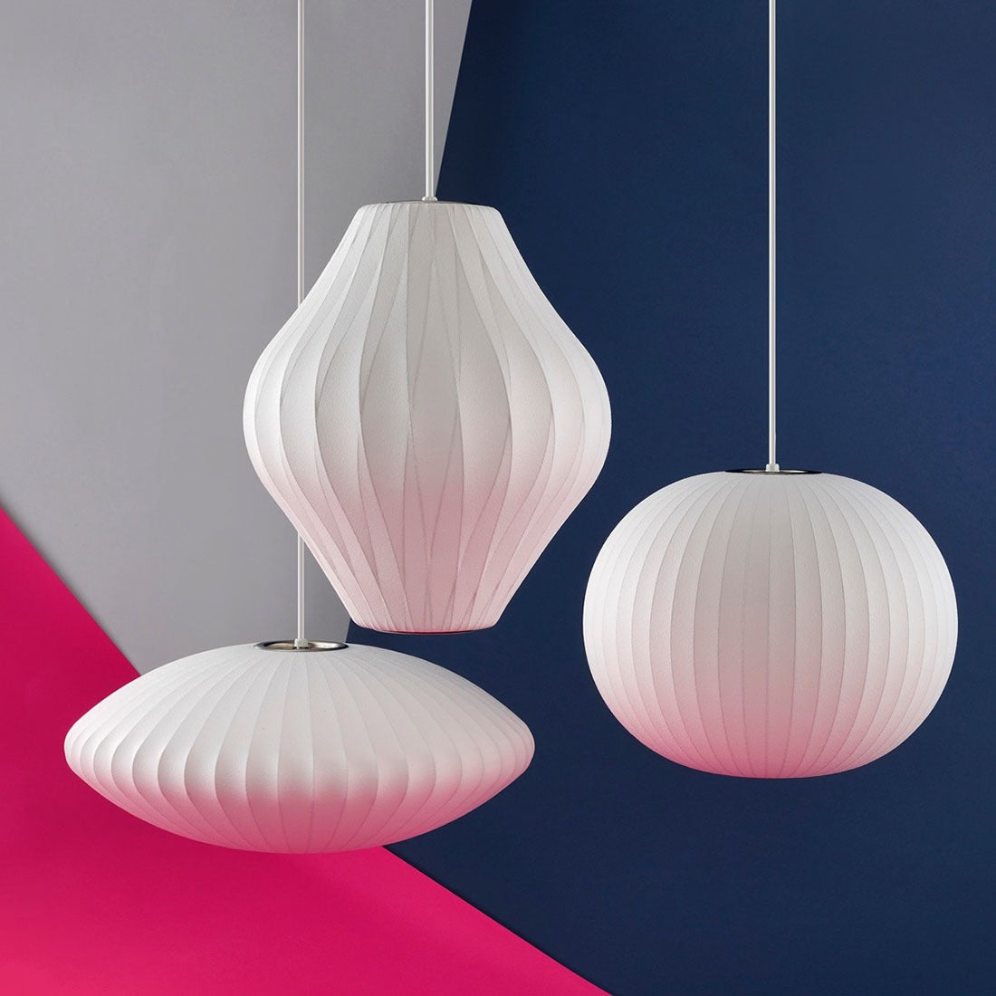 1947年にジョージ・ネルソンによりデザインされたペンダントライトです。細いス チールフレームに特殊なプラスチックをスプレーでコーティングする制作行程は当時と変わらず、シンプルなフォルムから幻想的な光を照らし出します。ミッドセンチュリーデザインのファンのみならず、世界中のユーザーを半世紀たった現代も魅了し続けています。