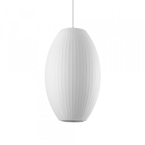 葉巻のような形状をした「Cigar Lamp」。吹き抜けや天高がある空間の演出に最適です。ニューヨーク近代美術館の永久保存コレクションとなっているバブルランプは1952年ジョージ ネルソンによってデザインされました。1つ1つが手作りで幻想的な光を照らし出すその美しさは、発売から半世紀たった現代でも魅了し続けています。【1952年デザイン】※バブルランプのフランジカップは角型引掛けシーリング対応です。