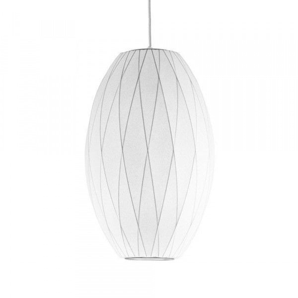 葉巻のような形状をした「Cigar Lamp」。吹き抜けや天高がある空間の演出に最適です。ニューヨーク近代美術館の永久保存コレクションとなっているバブルランプは1952年ジョージ ネルソンによってデザインされました。1つ1つが手作りで幻想的な光を照らし出すその美しさは、発売から半世紀たった現代でも魅了し続けています。【1952年デザイン】※バブルランプのフランジカップは角型引掛けシーリング対応です。