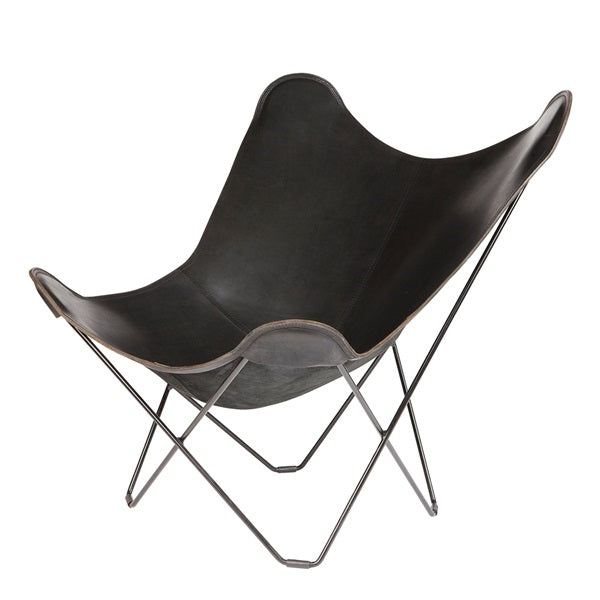 「バタフライチェア」の愛称でも知られる「BKFチェア」は、3人のアルゼンチン人デザイナー(アントニオ・ボネット、フアン・クルチャン、ホルヘ・フェラーリ=ハードイ)によってデザインされ、それぞれの頭文字をとってBKFチェアと名づけられました。彼らは20世紀を代表する建築家のル・コルビュジエの下で働いた経験を持ちますが、この椅子からはその影響はあまり感じられません。それよりも、イギリスのエンジニアのヨゼフ・フェンビィが1855年にデザインした椅子にインスピレーションを得て、1938年に誕生しました。1950年代から60年代にかけて特に若者たちに支持され、その人気はイームズ夫妻にも勝るとも劣らないものでした。ステッチが印象的なパンパマリポサは革の厚みが4mmと厚く、より高い強度とワイルドな革の仕上がりをお楽しみいただけます。組立式となります。