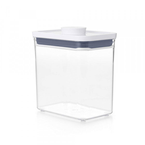 片手でボタンを押すように簡単に開閉できる密閉保存容器。また、計算されたモジュールでスタッキングが可能なため、美しく無駄なく収納ができます。塩または砂糖1kgやパン粉、コーヒー豆を入れるのに最適なレクタングルのショートサイズ。電子レンジ ×食洗機 ×