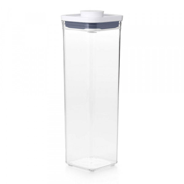 片手でボタンを押すように簡単に開閉できる密閉保存容器。また、計算されたモジュールでスタッキングが可能なため、美しく無駄なく収納ができます。パスタや昆布、そばを入れるのに最適なスモールスクエアのトールサイズです。用途:乾物専用。電子レンジ ×食洗機 ×