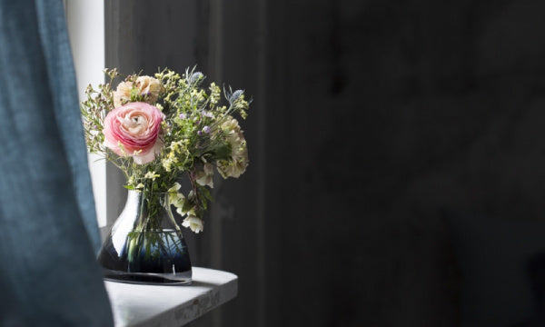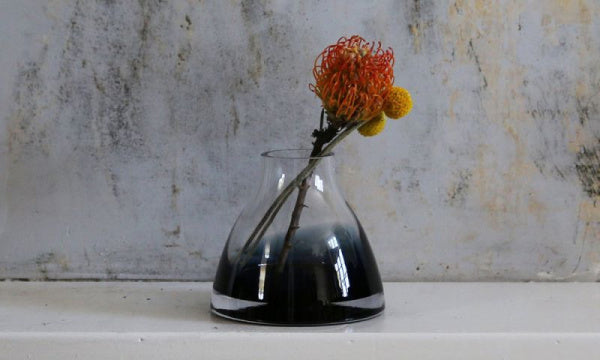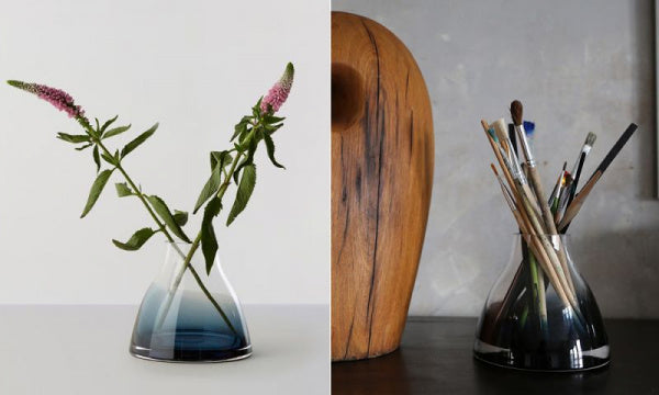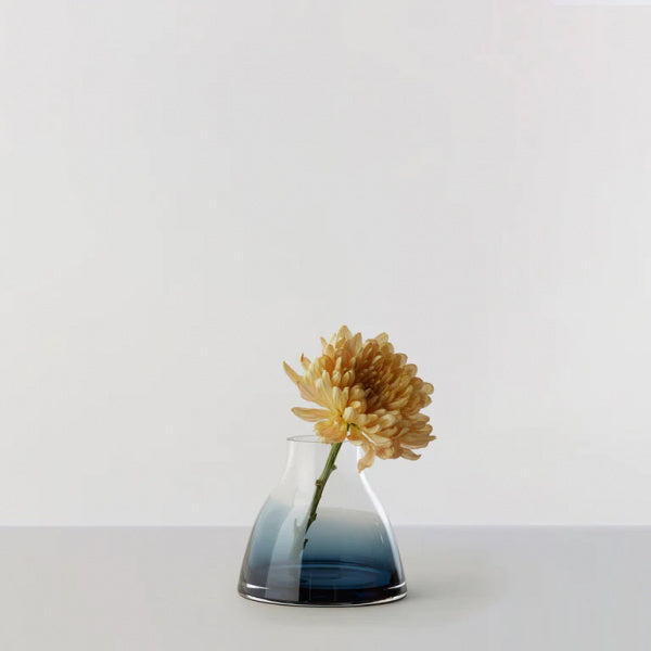 クリスタルクリアなガラスと、色のついたガラスが溶け合わさり、ガラス職人が伝統的なクラフトマンの技を用いて、溶けたガラスを魅力的な形に作り上げていきます。ハンドメイドであるため、色の出方や透明度、気泡の入り方などに個体差があり、それが一つ一つの製品に独特な表情を持たせ、世界で一つしかないユニークなものにしているのです。安定感のあるRoのフラワーベースは、下部に行くにつれ段々と色がついていき、花瓶の中の水を見えにくくすると共に、茎がガラスの色に徐々に溶け込んでいくように見えるデザインになっています。それはまるで、「自然」と「作品」が美しく機能的に溶け込んでいる様子を表しているようです。※商品に生花は含まれません。