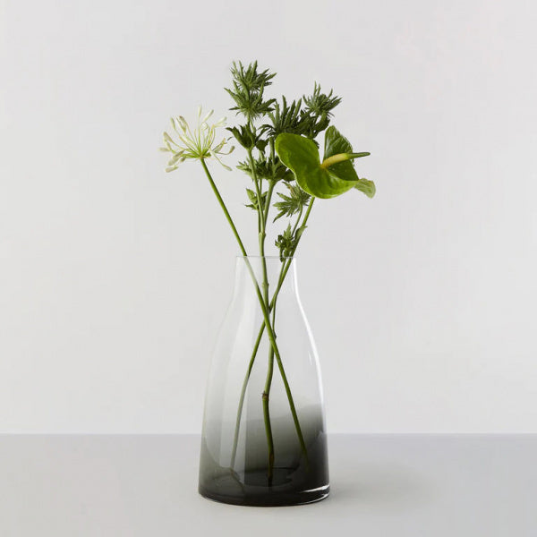 クリスタルクリアなガラスと、色のついたガラスが溶け合わさり、ガラス職人が伝統的なクラフトマンの技を用いて、溶けたガラスを魅力的な形に作り上げていきます。ハンドメイドであるため、色の出方や透明度、気泡の入り方などに個体差があり、それが一つ一つの製品に独特な表情を持たせ、世界で一つしかないユニークなものにしているのです。安定感のあるRoのフラワーベースは、下部に行くにつれ段々と色がついていき、花瓶の中の水を見えにくくすると共に、茎がガラスの色に徐々に溶け込んでいくように見えるデザインになっています。それはまるで、「自然」と「作品」が美しく機能的に溶け込んでいる様子を表しているようです。※商品に生花は含まれません。