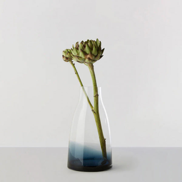 クリスタルクリアなガラスと、色のついたガラスが溶け合わさり、ガラス職人が伝統的なクラフトマンの技を用いて、溶けたガラスを魅力的な形に作り上げていきます。ハンドメイドであるため、色の出方や透明度、気泡の入り方などに個体差があり、それが一つ一つの製品に独特な表情を持たせ、世界で一つしかないユニークなものにしているのです。安定感のあるRoのフラワーベースは、下部に行くにつれ段々と色がついていき、花瓶の中の水を見えにくくすると共に、茎がガラスの色に徐々に溶け込んでいくように見えるデザインになっています。それはまるで、「自然」と「作品」が美しく機能的に溶け込んでいる様子を表しているようです。※商品に生花は含まれません。