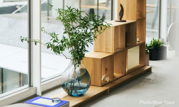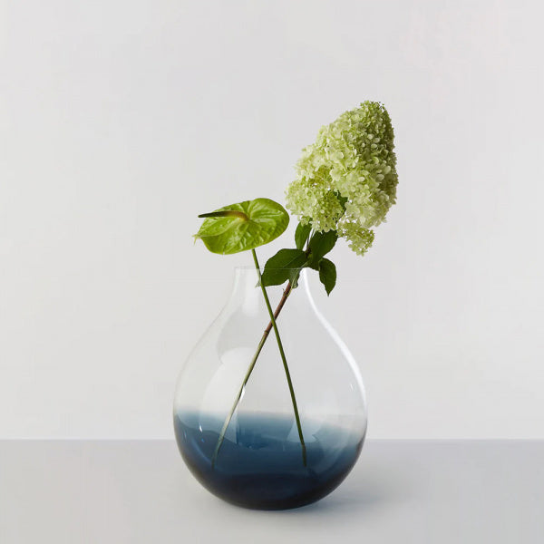 クリスタルクリアなガラスと、色のついたガラスが溶け合わさり、ガラス職人が伝統的なクラフトマンの技を用いて、溶けたガラスを魅力的な形に作り上げていきます。ハンドメイドであるため、色の出方や透明度、気泡の入り方などに個体差があり、それが一つ一つの製品に独特な表情を持たせ、世界で一つしかないユニークなものにしているのです。安定感のあるRoのフラワーベースは、下部に行くにつれ段々と色がついていき、花瓶の中の水を見えにくくすると共に、茎がガラスの色に徐々に溶け込んでいくように見えるデザインになっています。それはまるで、「自然」と「作品」が美しく機能的に溶け込んでいる様子を表しているようです。※商品に生花は含まれません。
