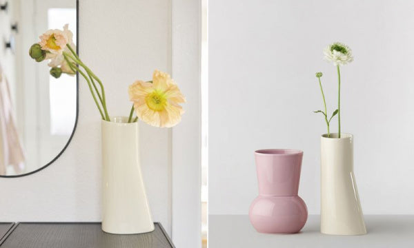 オーバルベースは、スタイリッシュでカラフルな3つのフラワーベースのコレクションです。楕円形の球体、円錐形、円筒形などの幾何学的な形を融合させ、目を錯覚させるようなデザインです。花器の向きや置き方によって、新たな表情を見せてくれます。楕円形の台座は、狭い窓枠や棚などにも置くことができます。花を活けても、活けなくても、どちらも楽しめる花器です。※商品に生花は含まれません。