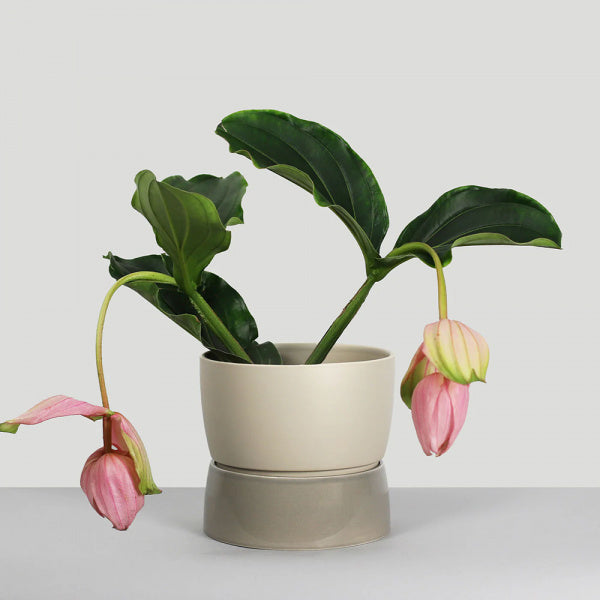 ツートーンプランターは、コントラストが特徴的なプランターシリーズです。鉢はシルクのような釉薬、受け皿は半透明で淡い色の釉薬で、2つのユニットが互いを引き立てます。ツートーンプランターは、場所を取らず窓辺や棚の上に置くのに適しています。受け皿はプランターを安定させ、小さな植物にも大きな植物にも適しており、水抜き穴から水を吸い上げることができます。屋内用の軽量粘土製で、デンマークの風景に見られる色合いにインスパイアされたカラーです。植物を直接植えることも、プランターとして使用することもできます。通常の土では重すぎるため、必ず培養土を使用してください。※商品に生花は含まれません。