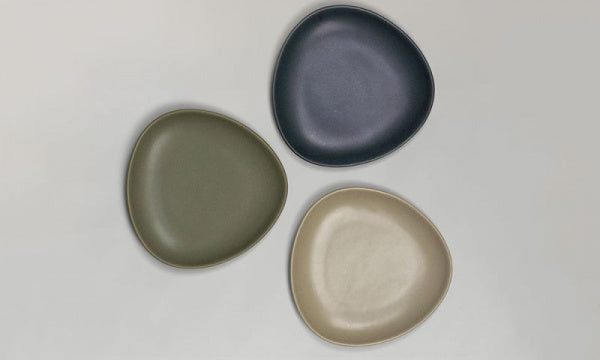 シグネチャープレートは、ローコレクションのストーンウェアシリーズの特徴である、有機的な三角形のデザインで作られた食器です。フレームは高火度ストーンウェアで作られ、特別に開発された反応性釉薬がかけられているため、ひとつひとつに個体差があります。プレートは、日本の美意識とデンマークの機能性にインスパイアされたプレート、カップ、マグカップ、ボウル、水差しからなるシリーズのひとつ。デザートサイズのシグネチャープレートは、スイーツや小さな前菜を盛り付けるための、小さくて繊細なプレートです。プレートはポルトガルの小さな工場で生産されており、そこでは数世代にわたって誇り高きセラミック工芸の伝統が受け継がれています。