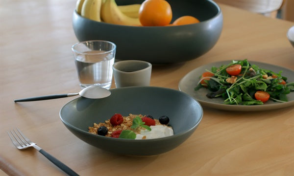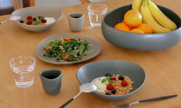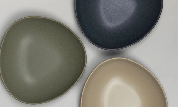 シグネチャープレートは、ローコレクションのストーンウェアシリーズの特徴である、有機的な三角形のデザインで作られた食器です。フレームは高火度ストーンウェアで作られ、特別に開発された反応性釉薬がかけられているため、ひとつひとつに個体差があります。プレートは、日本の美意識とデンマークの機能性にインスパイアされたプレート、カップ、マグカップ、ボウル、水差しからなるシリーズのひとつ。ディープサイズのシグネチャープレートは、ディナーにもブレックファストにも使える美しい深皿です。プレートはポルトガルの小さな工場で生産されており、そこでは数世代にわたって誇り高きセラミック工芸の伝統が受け継がれています。