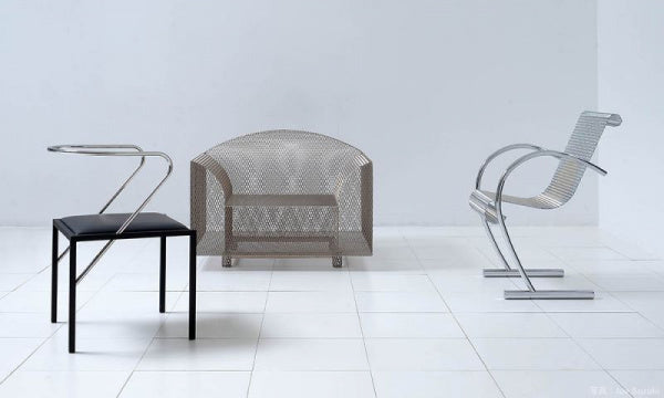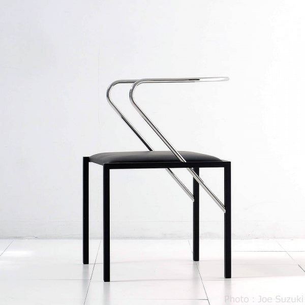 安藤忠雄が1985年に設計した京都下鴨のカフェレストトラン、モン・プティ・シュのためにデザインされた椅子です。フォルムは、鉄製のスツールに部に、肘掛けと背もたれが一体となったステンレスパーツを差しこんだシンプルなもの。パーツを傷つけずに仕上げるには、職人の高い技術が要求されます。座面が低いうえ、復刻版はしっかりクッションが入っているので、掛け心地がよく普段使いのできる一脚です。長い事製造されていませんでしたが、ギャラリー田村ジョーの手で復刻。センプレはメーカーとしてこの椅子に関わっており、シリアルナンバーの入ったプレートが付与されています。【1985年デザイン】