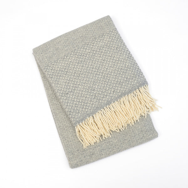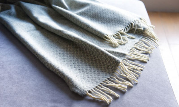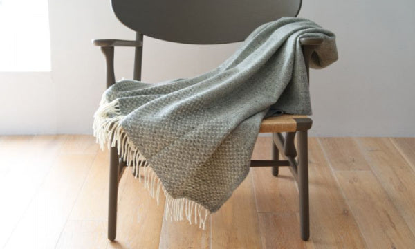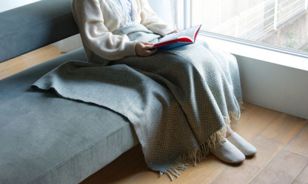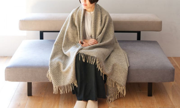 ふたつの柄の切り替えが、インテリアのアクセントに。シ・コラサォンのウール生地は、1600年代の織機ならではのパターン柄と風合いに特徴があります。羊毛家のファミリーが天然にこだわり、羊毛を紡ぐことから丁寧な手しごを積み重ねて創り出すふわふわとした弾力のある毛布は心まで包みこんでくれるあたたかさ。ポルトガルのラッキーチャーム、ツバメをモチーフにした伝統のパターンをモダンにアレンジしたシングルカラーながら、ふたつの柄の切り替えがアクセントの洗練のデザイン。寒い時期の色々な生活シーンに万能に使える1300×1800mmサイズ。ちょうどシングルベットサイズなので、オーバーブランケットとして、ダブルベットでは足元のスローケットとして、リビングではソファカバーやスローケットに、またアウトドアのお伴としても重宝する1枚です。