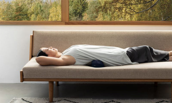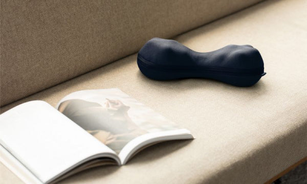 腰まわりのコリをぐいっと揉みほぐすクッション。上に寝転がると、身体の重みで中央のくびれ部分が沈みこみます。このしなり構造により、左右に配置された14個の指圧突起が腰まわりの筋肉に入り込んでコリを押圧。身体を左右に軽く揺らすと押圧感が高まり、腰を快適にリフレッシュできます。クッションをあてる位置を背中・腰・お尻とずらしていくと、全身のコリほぐしもできます。&Medicalのほぐし系アイテムの中でもダントツの人気を誇るコシモミー。ぐいっときてくれるので、短時間でスッキリします。椅子の背もたれに挟んでぐいっと背伸びするだけでもリフレッシュできます。