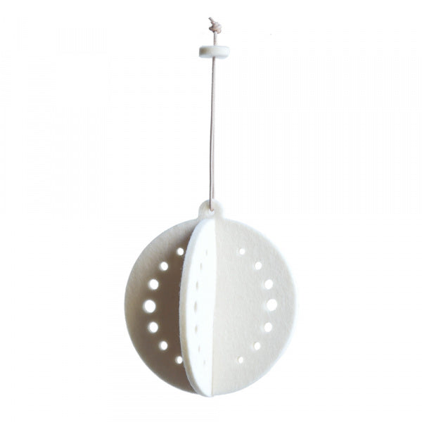 ウールフェルトでできた立体的なクリスマスボール。フェルトに施された模様は、華やかに見せてくれるだけでなく、軽やかなイメージのディスプレイに仕上げてくれます。落としても割れないので、お子様やペットがいるご家庭でも安心です。しまうときは平らにできるので収納にも困りません。丈夫で堅牢なウールフェルトはウールマークを獲得した100%ピュアなニューウールで、エコテックス認証済み。ウールが本来もつ油分によって表面の汚れや水もはじきやすい為、お手入れも簡単です。商品撮影時の照明条件や画面設定の違いにより、商品の色が忠実に再現されない場合があります。表面に見られる天然繊維の小さな変化やわずかな混入は、100%天然素材であることの証明です。