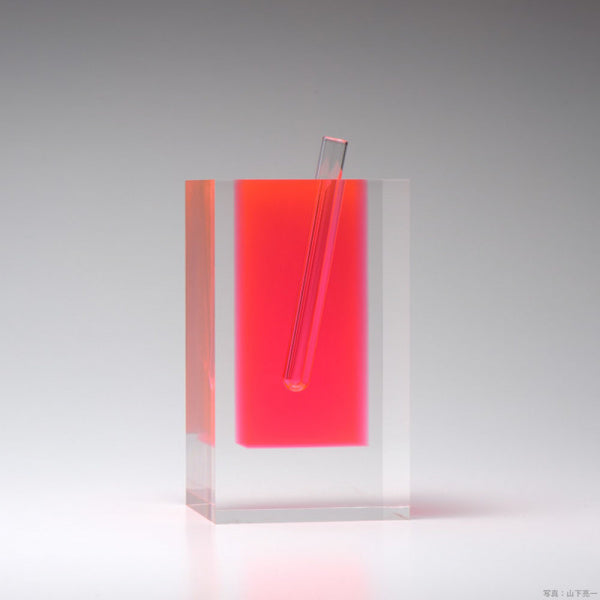 倉俣史朗の代表的な作品とも言える、アクリルブロックのフラワーベース。一輪挿し、二輪挿しタイプの2種類があり、1個1個職人の手で作られています。アクリルの中にはガラスの試験管が差し込め、取り外すことも可能です。