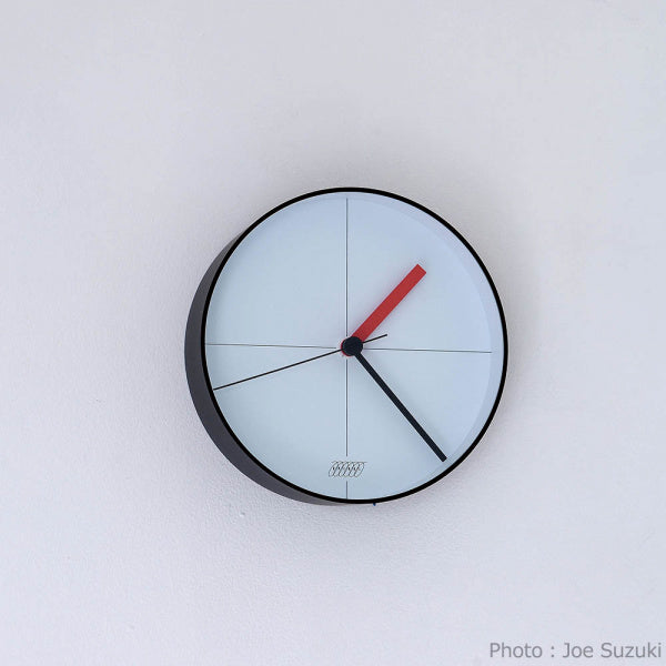 倉俣史朗が六本木のAXISビルに入っていた、SPIRALのためにデザインしたウォールクロック。シンプルで立体的なデザインのフレームは、アルミの素材をそのままにアルマイト技法を使って黒く染色しています。文字版の下に印刷されている、SPIRALのロゴ は日本を代表するグラフィックデザイナー田中一光のデザインです。