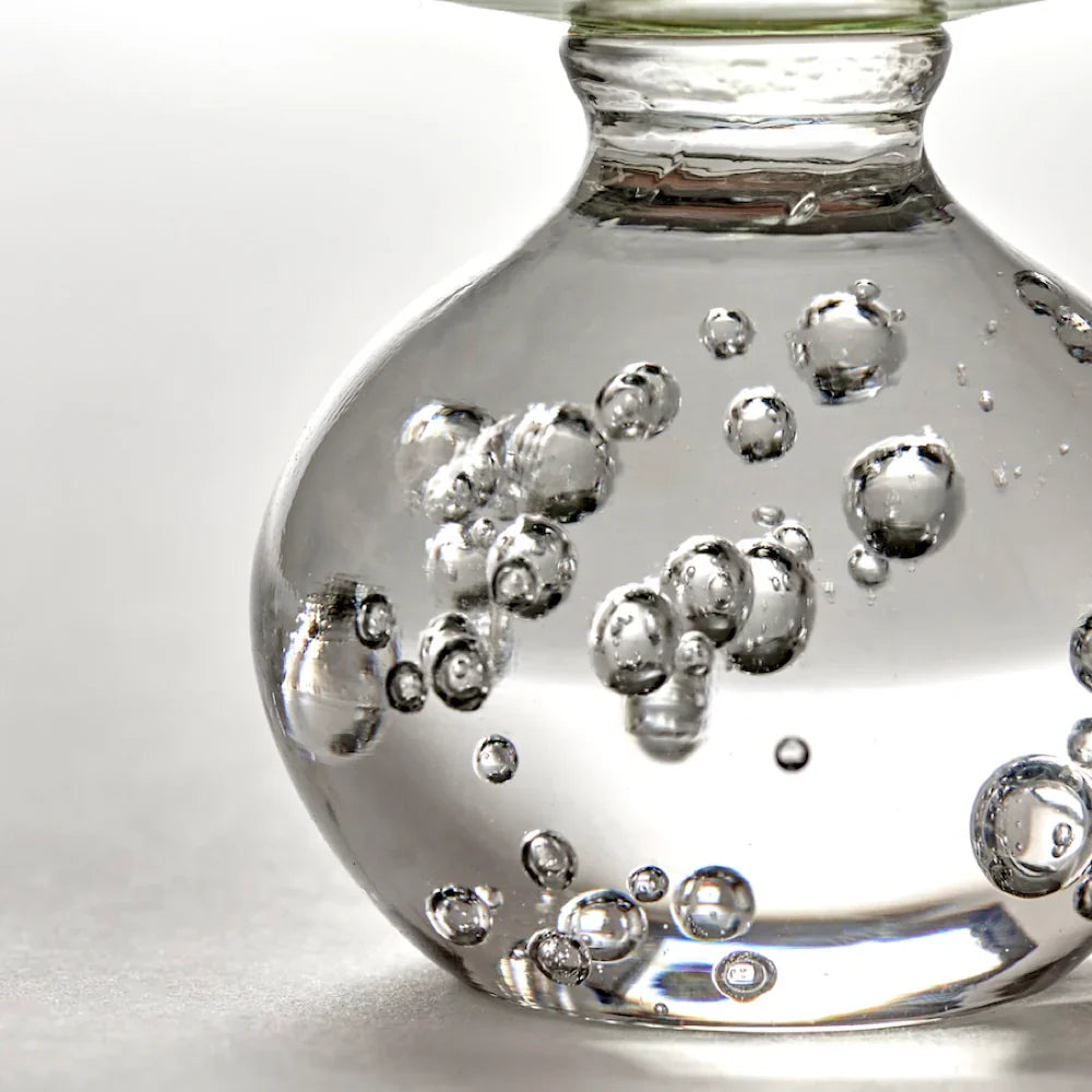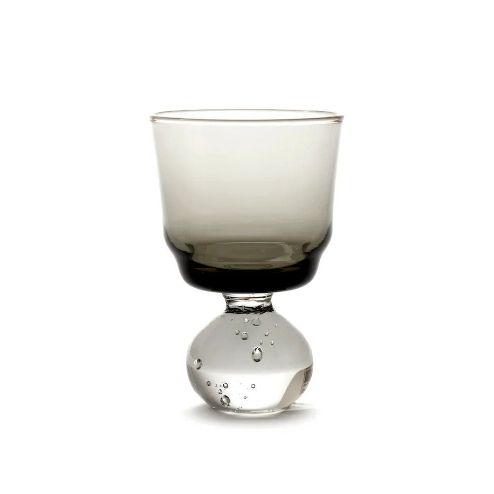 丸いフットで遊び心があるデザインのグラス特徴的な丸いフットが魅力のステムグラス。Eternal Snow の滑らかな質感と、型破りな吹きガラスの形状を組み合わせてデザインされました。